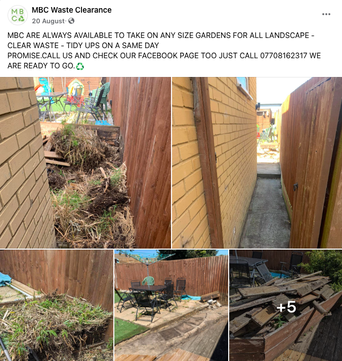 We will send you one of our professional man and van teams to the desired collection address. On site our team will load the waste and take before and after pictures and leave the area clean and tidy!